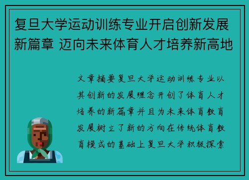 复旦大学运动训练专业开启创新发展新篇章 迈向未来体育人才培养新高地